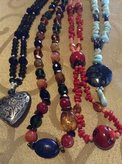Necklaces combined with Agates, Red Corals, Amber, Larimar, Glass Bead