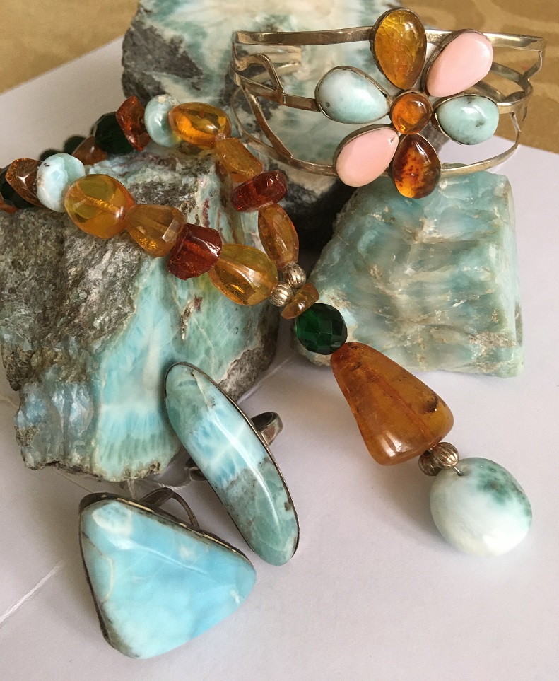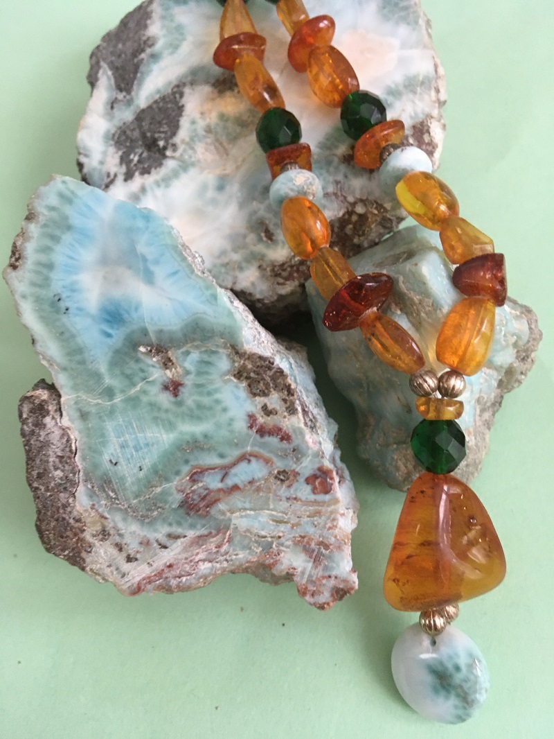 create elegant pieces combining genuine Dominican Amber & Larimar,
